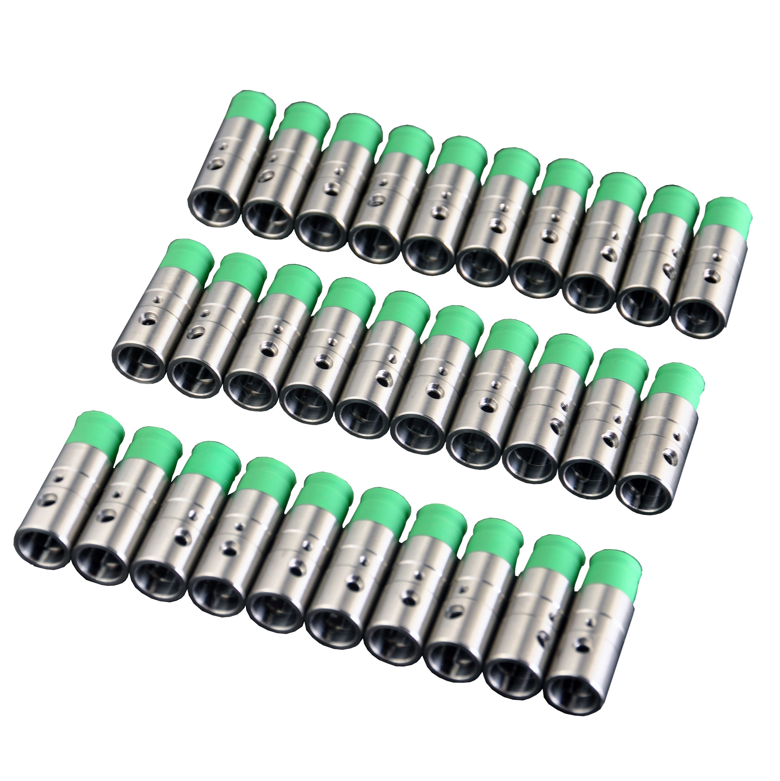可调焦非球面准直器在不锈钢外壳内部用弹簧装载了一个镀增透膜的非球面透镜。这些产品用于准直光纤的输出光,焦距为4.6 mm和7.5 mm的可调准直器带有FC/PC接头,而焦距为2.0 mm和11.0 mm的版本可选FC/PC或FC/APC接头。旋转准直器的外部套筒可以使内部的非球面透镜沿光轴进行非旋转平移,从而调节透镜和光纤端面之间的距离。螺纹上的深色环带表示建议的外部套筒最远位置。准直器调整超出此位置将导致性能下降,以致规格参数不合格。一旦达到所需位置,就可以使用外壳外部的滚花锁紧环将调节器锁定。这些准直器设计有非旋转透镜筒。调节机制具有严格的公差,可最大程度地减少光束对准误差。对于2.0 mm焦距准直器,对准稳定性在15 mrad之内;对于4.6 mm和7.5 mm焦距准直器,对准稳定性在5 mrad之内;对于11.0 mm焦距准直器,对准稳定性在1 mrad之内。